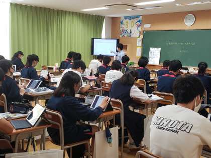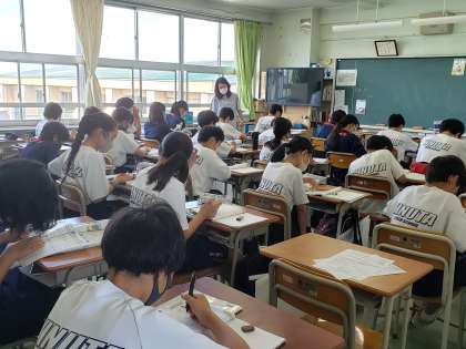 1学期の授業も今日と明日まで。先週末に梅雨明けとなり、一気に夏本番となりました。緑に囲まれた砧中学校。蝉の声が教室まで響いてきます。