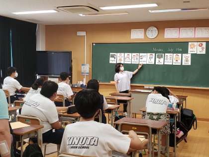 ピクチャーカートを使いながら、普段使う日本語を英語へと変換しています。例えば「社会科」なら「social study」などです。「social」って何ですか?という質問もありました。最近どこかで聞いたことのある単語ですよね。そうです。「social distance」ですね。「社会的な」という意味だと理解できますね。