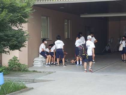 15時30分頃から予定していた部活動。屋外での活動を行うには、まだ熱中症指数が高い状況でした。そのため16時過ぎまで陰のある場所で待機をお願いし、改めて指数を確認してから練習をスタートさせることにしました。逸る気持ちはよくわかります。もう少しお待ちくださいね。