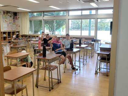 午後の活動が始まりました。屋外の活動については気温の上昇を見ながら、30分ごとに指数をチェックします。適宜マスクを外すことと、冷房の効いた休憩室を確保し、こまめな休憩を入れていきます。
