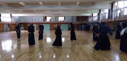 午前中、体育館、格技室の熱中症指数は23〜24です。比較的過ごしやすいですが、こまめな水分補給を行いながら練習しています。