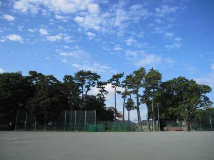 校庭から古墳を写した写真の空の色がとてもきれいです。