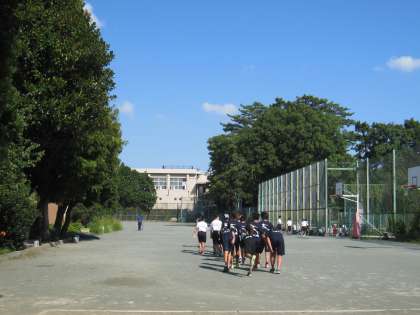 陸上部はアップのあとハードルの準備を始めていました。
