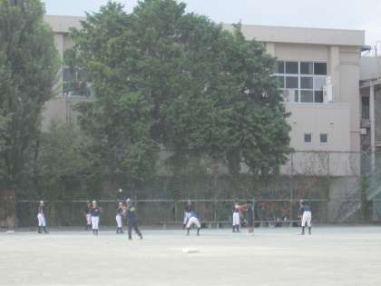 校庭に金属バットの快音が響いています。野球部と陸上部が活動を始めています。