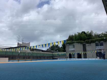 雨雲レーダーや天気の目視より10時から再開することになり、プールに入れることに生徒たちは喜んでいました。