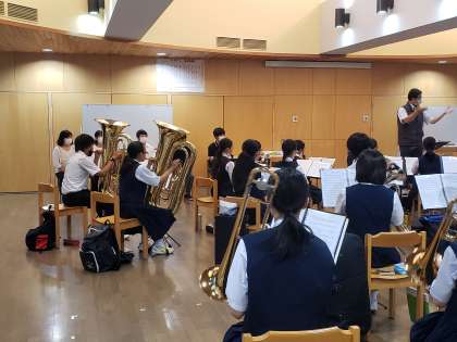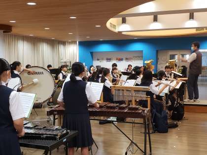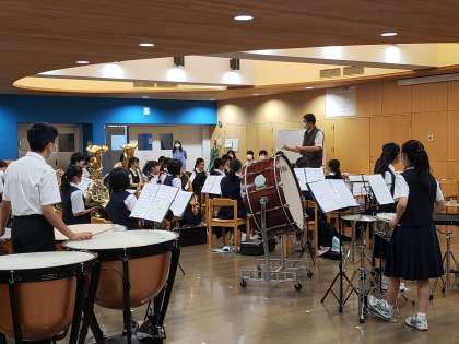 今日の午前中には本校ランチルームにて、本番さながらに演奏会を開催しました。教職員も駆けつけ部員たちにエールを贈りました。部員たちの真剣に取り組む姿に、先生たちも思わず涙ぐんでいました。
