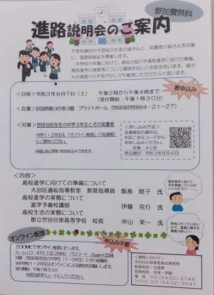 世田谷区の進路説明会も参考に