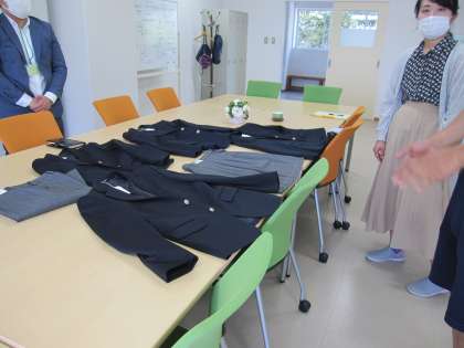 同席していただいた小学校6年生の保護者の方からはスカートがしわになりにくいか、袖口はてかりにくいかといった保護者の方ならではの質問をしていただきました。