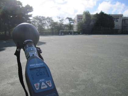 校庭の熱中症指数は26.9度です。久しぶりの部活動については、感染症対策とともに、生徒の体力面も考慮しながら、こまめに休憩をとって行っていきます。