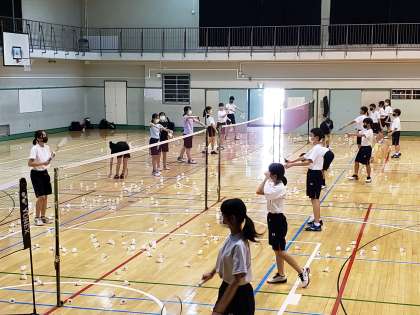 午後は体育館アリーナでバドミントン部が練習を行っています。14時からの活動でしたので、登校時に大雨の時間帯も避けられました。
