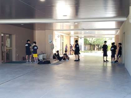 本日午後は予報通り猛暑となりました。校庭での午後の活動はありません。今日の部活動の予定は14時まで。バスケットボール部が活動を終えてこれから帰宅します。ミスト発生器はやはり人気ですね。