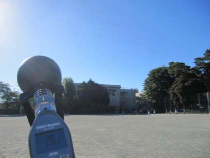 現在の熱中症指数は26.6度です。校庭での部活動はすべて午前中に予定されています。こまめな休憩、水分補給をしながら活動してまいります。(副校長)