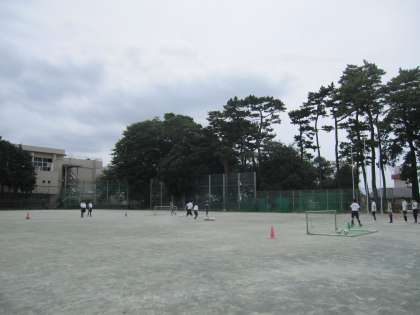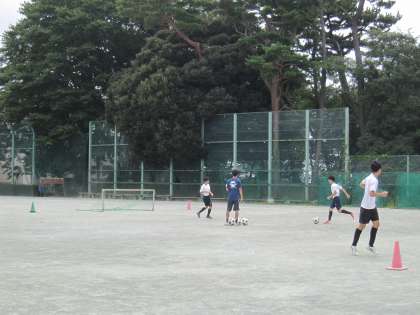 サッカー部、今日は少し参加者が少ないようです。シュートにつながるプレーを丁寧に確認していました。
