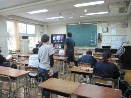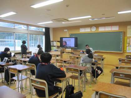 I組では学年ごとの教室でTeams会議を行っています。教員と生徒が画面上でつながれることは今後の安心材料の一つとなります。