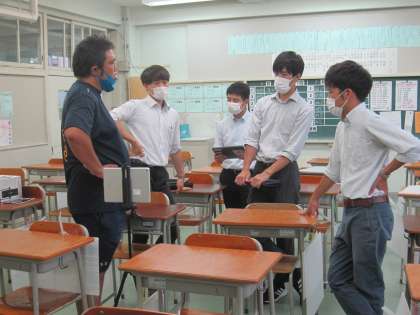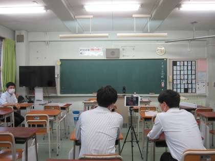 ICT推進チームがどの位置にIpadをセットすると見やすいのか、周りの音はどの程度聞こえるのかなどを綿密に確認しています。明日、無事に配信されますように。(副校長)