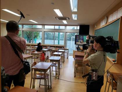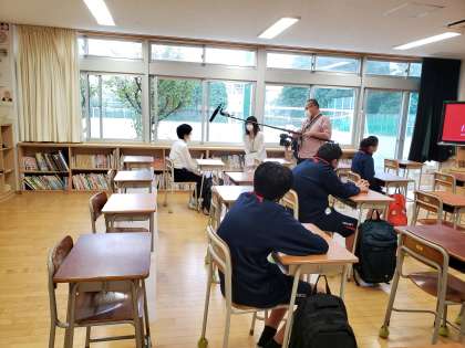 I組でのNHK取材が始まりました。これまでのパラリンピック教育を振り返りながら、これからはどんな目標を持って進路を切り開いていきたいのか、インタビューを通じて抱負を語ってくれました。相当緊張したと思いますが、一人ひとりが自分の言葉で自分の考えを伝えることができています。