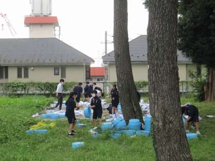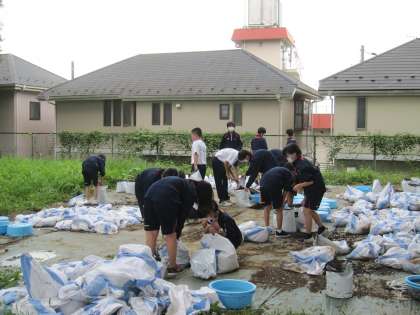 1年生技術の栽培の授業です。1学期の終わりに腐葉土を混ぜて作っておいた土を大根を育てる袋の中に入れていきます。土の中から出てきた幼虫にびっくりする場面もありましたが、無事種を植えることができました。今後は木工の設計と並行して、成長の様子を見ていきます。