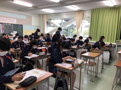 本日6時間目の授業では、1学期に受けた職業レディネステストの結果を見ながら、改めて自分の進路について考えました。その職業に就くにはどのような進路に進めば良いのか調べたり、疑問点をまとめたりしました。細かい分析が出ていましたので、参考になる材料になりそうですね。