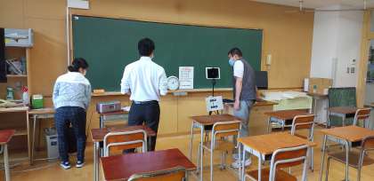 3年生英語のテストが始まりました。リスニングテストがうまく聞き取れなかった生徒へは、次の登校日21日(火)の朝に対応いたします。リスニングが聞き取れなくてもご心配なく、リスニング以外の問題に取り組んでください。