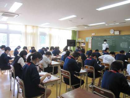 英語のテスト、リスニングが学年ごとに始まりました。英語科の教員は放送がうまく流れているか、音量は適切かなどチェックしながら巡回しています。(副校長)