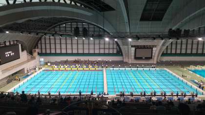 今日は第69回東京都中学校学年別水泳競技会の第一日目です。