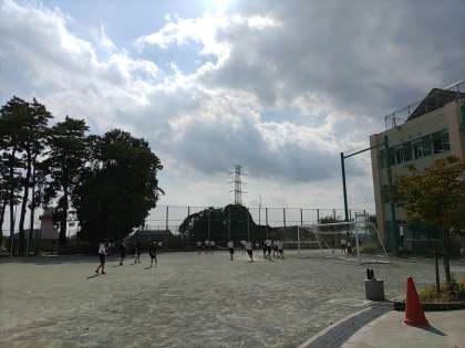 校庭の生徒たち、暑さをものともせずボールを追いかけています。鬼ごっこの生徒とぶつからないよう、教員が声をかけています。