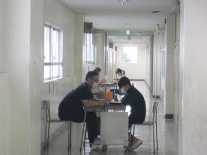 今日は身だしなみを考える日です。生徒は気候に合った過ごしやすい服装を考えてジャージや私服で登校しています。