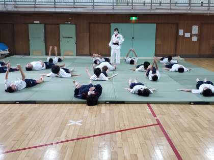今日は受け身を中心に学習します。受け身を学ぶことで、怪我の予防効果も目指しています。