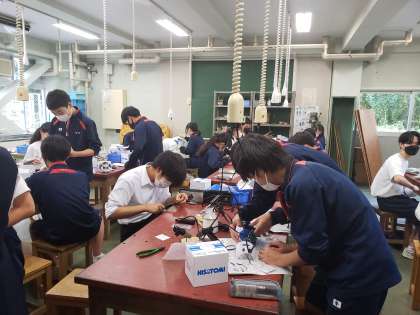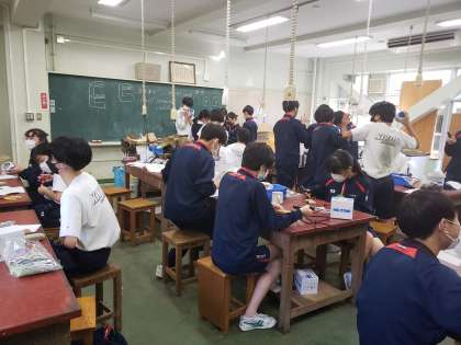 中学校の技術の時間に、ロボットを製作する時代が来るとは、昭和時代から教師を続けている身からは、隔世の感があります。生徒たちは複雑な構造を理解しているようで、淡々と作業に取り組んでいました。