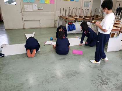 1年生のクラスでは、合唱練習のための歌詞と歌い方を模造紙に大きく書いていました。少しでも効率的に練習を進めるための工夫です。