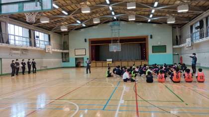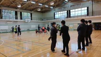 本日は体育の授業を公開しています。他教科の教員も授業観察しています。