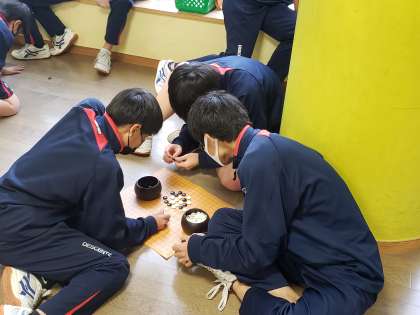 囲碁・将棋が活況を呈しています。立ち上げ当初は将棋をする生徒が多かったのですが、次第に囲碁人気も高まってきました。