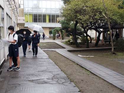 冷たい雨の一日となりました。小雨ではありますが、帰宅時も傘が必要です。半袖の生徒に「寒くない?」と尋ねると「大丈夫です」と元気に返してくれました。校長は今日はコートを引っ張り出してきて出勤したのですが。若さを羨ましく思います。
