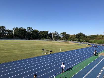 朝のひんやりとした空気が、冬の訪れを感じさせます。雲は一つもなく、太陽の陽を受けながら競技に臨めそうです。