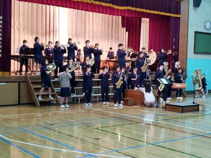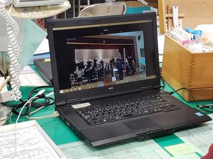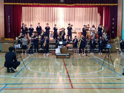吹奏楽部リハーサルが始まりました。照明や音響の調整も念入りに行っています。オンライン中継の確認も同時平行で。