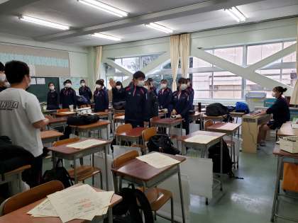 自主練習に取り組む学級、早めに登校して全体練習に取り組む学級、それぞれ今週の計画に沿って取り組んでいました。各学級の自由曲が混声となって、2年生の廊下が華やいだ雰囲気となっていました。