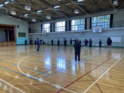 普段の練習場所と違って、間隔の広さや向き、退場後の動きの確認をしました。