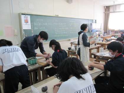 1年生美術では今週、陶芸の作品作りを行っています。工房の方にもアドバイスをお願いしています。