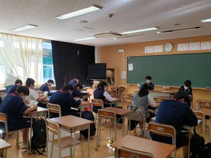 I組、朝読書の様子。