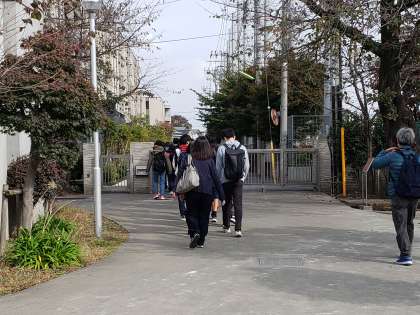 I組、川崎市へ向けて出発しました。雲の切れ間から太陽が覗き、気温も暑くもなく寒くもなく、まさに校外学習日和となりました。気をつけて、いってらっしゃい。