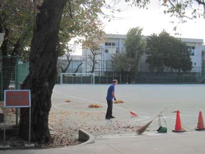 校庭の落ち葉が木々の冬支度を感じさせますね。