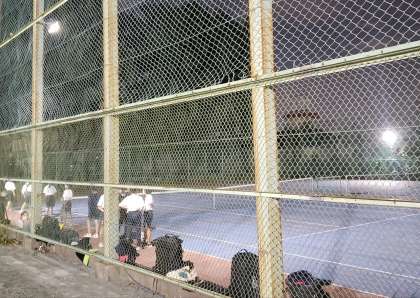 テニスコートは部員からの要望を受けて、照明設備が整いました。この時間でもボールを追えると部員たちには好評のようです。