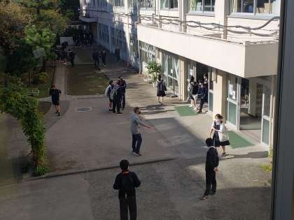 今日は小学生の砧中訪問のため、13時40分に下校となります。