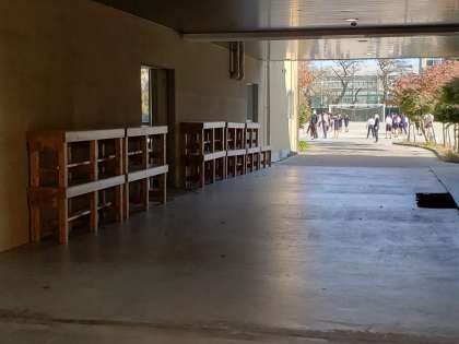 小学生の砧中訪問と同時平行で、合唱演台の返却作業が行われていました。学芸発表会で使用した演台。例年より重量のある台をレンタルしていましたが、本日教職員で自動車への詰め込み作業を行い、無事に返却しました。