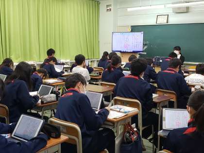 さあ、1校時の授業が始まりました。1・2年生の授業の様子です。生徒たちは期末考査をイメージしながら、授業に臨んでいます。