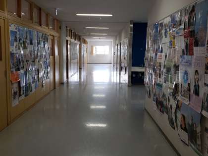 3年生の廊下には、高校を含めた進路関係のポスターが勢揃いしています。まずは進路希望の学校をよく知ることですね。