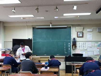 I組は少人数に分かれての国語の授業。期末考査に向けての対策など確認していました。