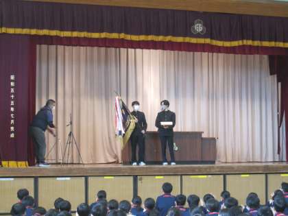 また、表彰は吹奏楽部、水泳部、演劇部、そして区の総合体育大会男子の部の総合優勝の表彰がありました。