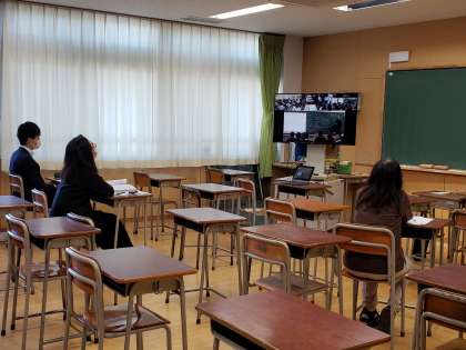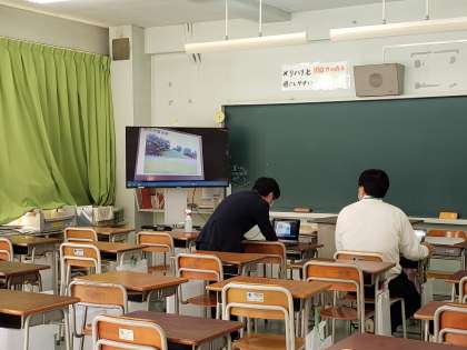 昨年度からは人数の多い部会では、オンライン研修に切り替わりました。写真は数学と社会の様子です。