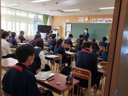 ホームページでは、日頃は朝読書や朝自習の様子が中心ですが、今日は朝学活で担任がどんな話をしているかを簡単に紹介します。3年生の教室を覗いてみました。